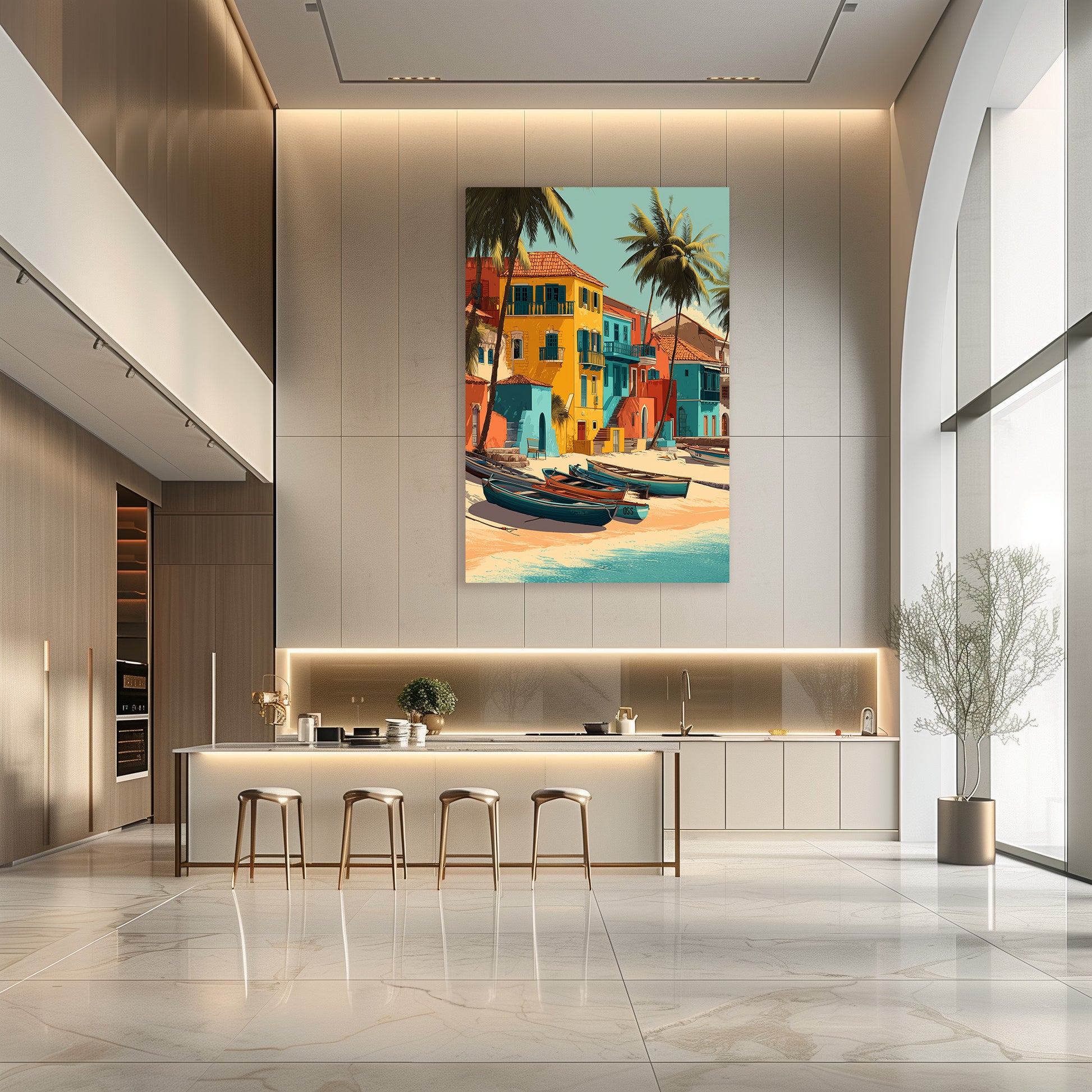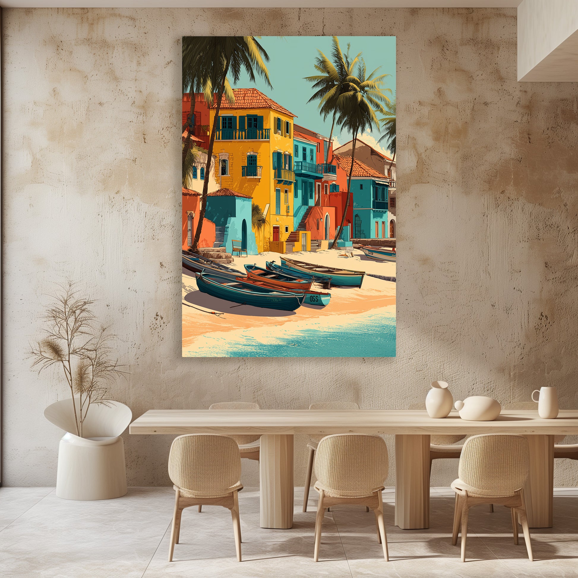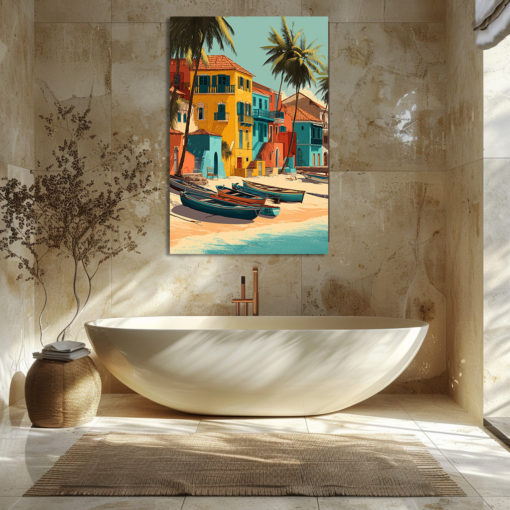 Una isla brasileña bañada por el sol, entre casas de colores y vibrantes aguas turquesas. La dulzura tropical y los tonos vibrantes invitan a la evasión e infunden una energía luminosa a tu decoración. Una pieza perfecta para crear un ambiente cálido y exótico. Una invitación permanente a viajar y a la libertad.