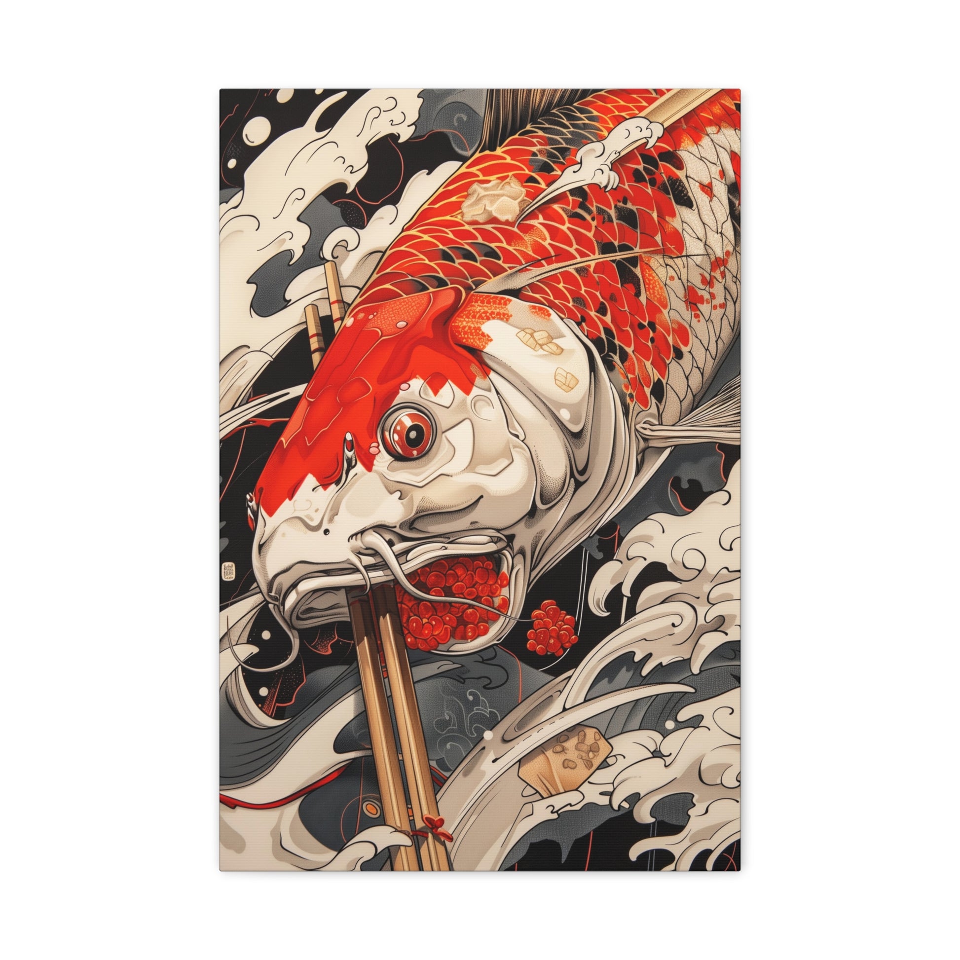Majestueuse et puissante, cette carpe koi se déploie au milieu des vagues, dans un style japonais raffiné et détaillé. La finesse des motifs, les nuances rouges et ivoire, et les lignes dynamiques créent une œuvre qui symbolise la force, la chance et la persévérance. Un tableau élégant et sophistiqué, idéal pour apporter une ambiance japonaise moderne et harmonieuse à votre intérieur.