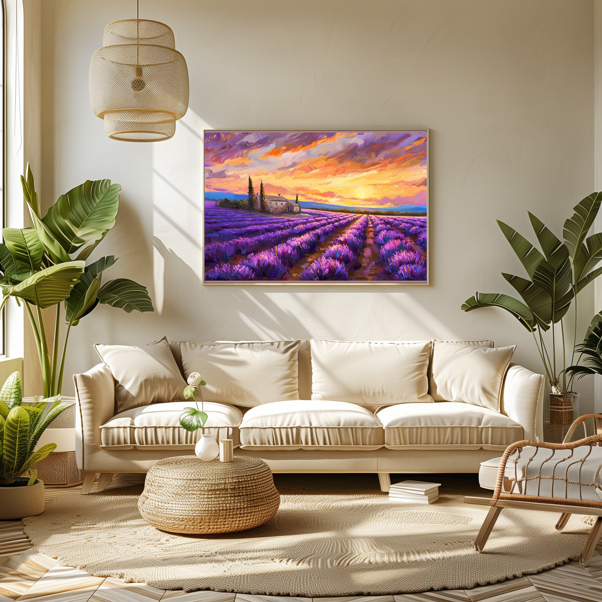Toile premium montée sur châssis FSC, livrée prête à installer avec emballage renforcé. Impression haute définition et finitions soignées pour un rendu artistique exceptionnel.