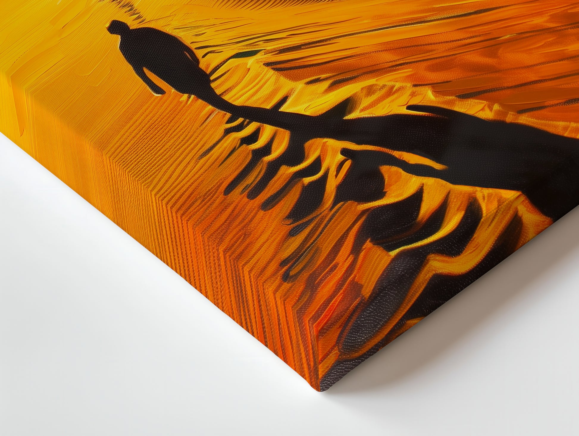 Tableau minimaliste et intense représentant une silhouette avançant au cœur d’un désert doré. Les ombres longues, les courbes des dunes et les teintes chaudes créent une ambiance visuelle forte et cinématique. Une œuvre épurée, aesthetic et puissante, parfaite pour apporter de la profondeur, du calme et une touche contemporaine à n’importe quel intérieur.