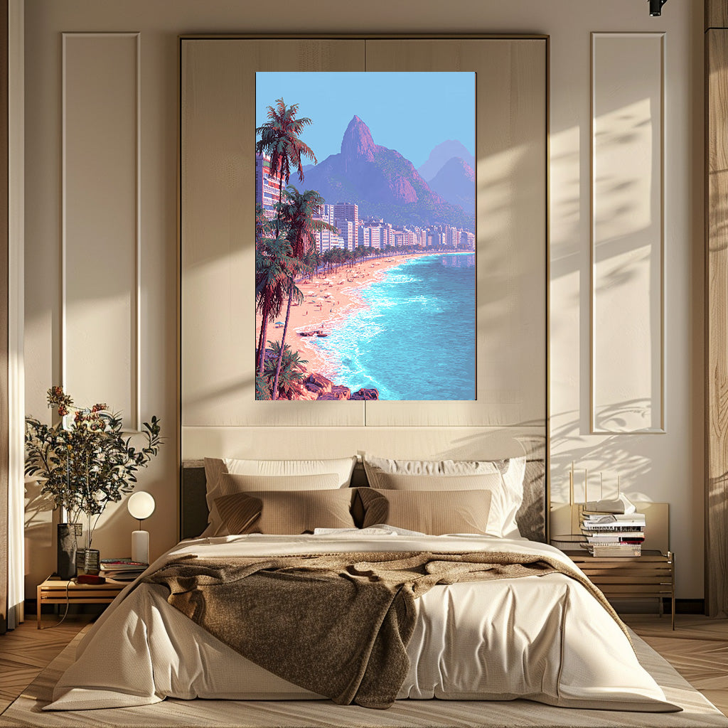 Cette œuvre capture la magie lumineuse de Copacabana, où l’océan turquoise rencontre les reliefs mythiques de Rio. Les tons doux et la lumière chaleureuse créent une atmosphère apaisante et immersive, comme une parenthèse hors du temps face à la mer. Un tableau vibrant qui respire le voyage et la douceur de vivre brésilienne.